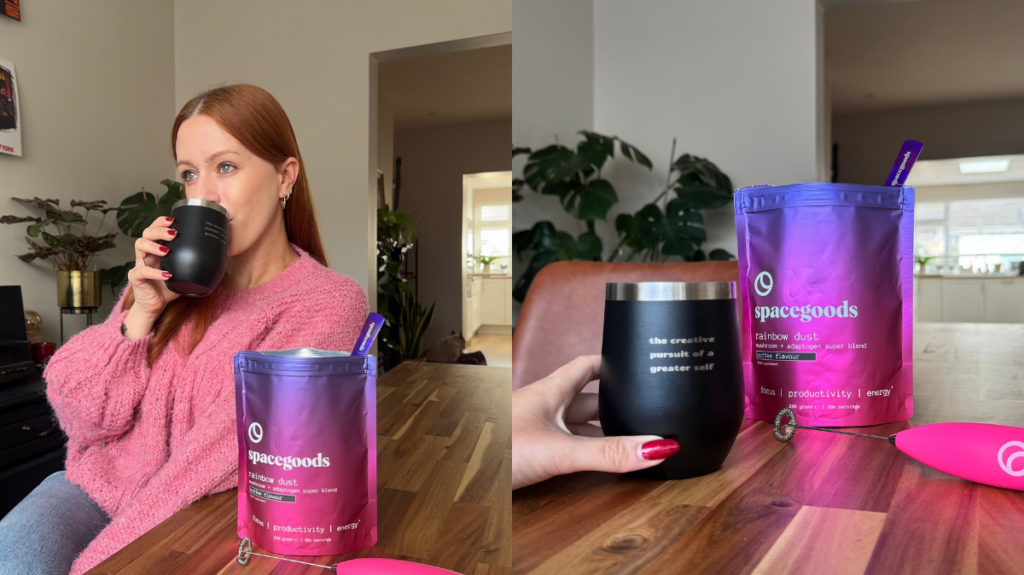 That’s when I came across Spacegoods Rainbow Dust. It’s a blend of adaptogenic mushrooms and coffee designed to support focus, energy, calm and mental clarity. It promises sustained attention without traditional coffee’s crash.